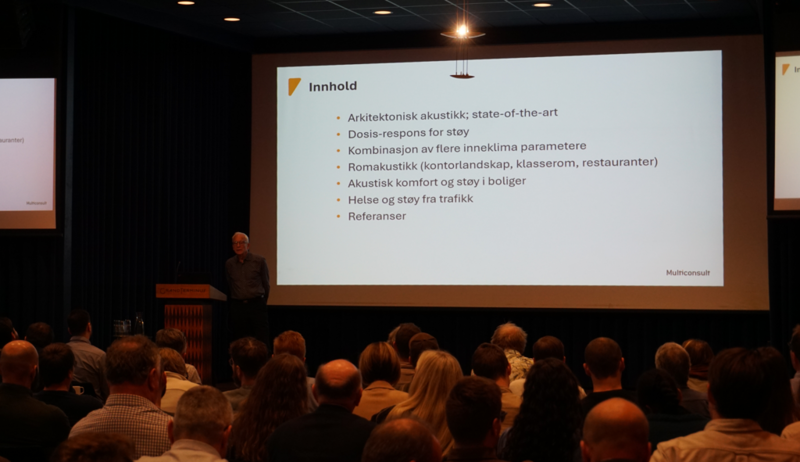 Jens Holger holdt presentasjon på høstmøtet om: Støy i relasjon til inneklima, komfort og helse. Foto: Andreas Dyrli